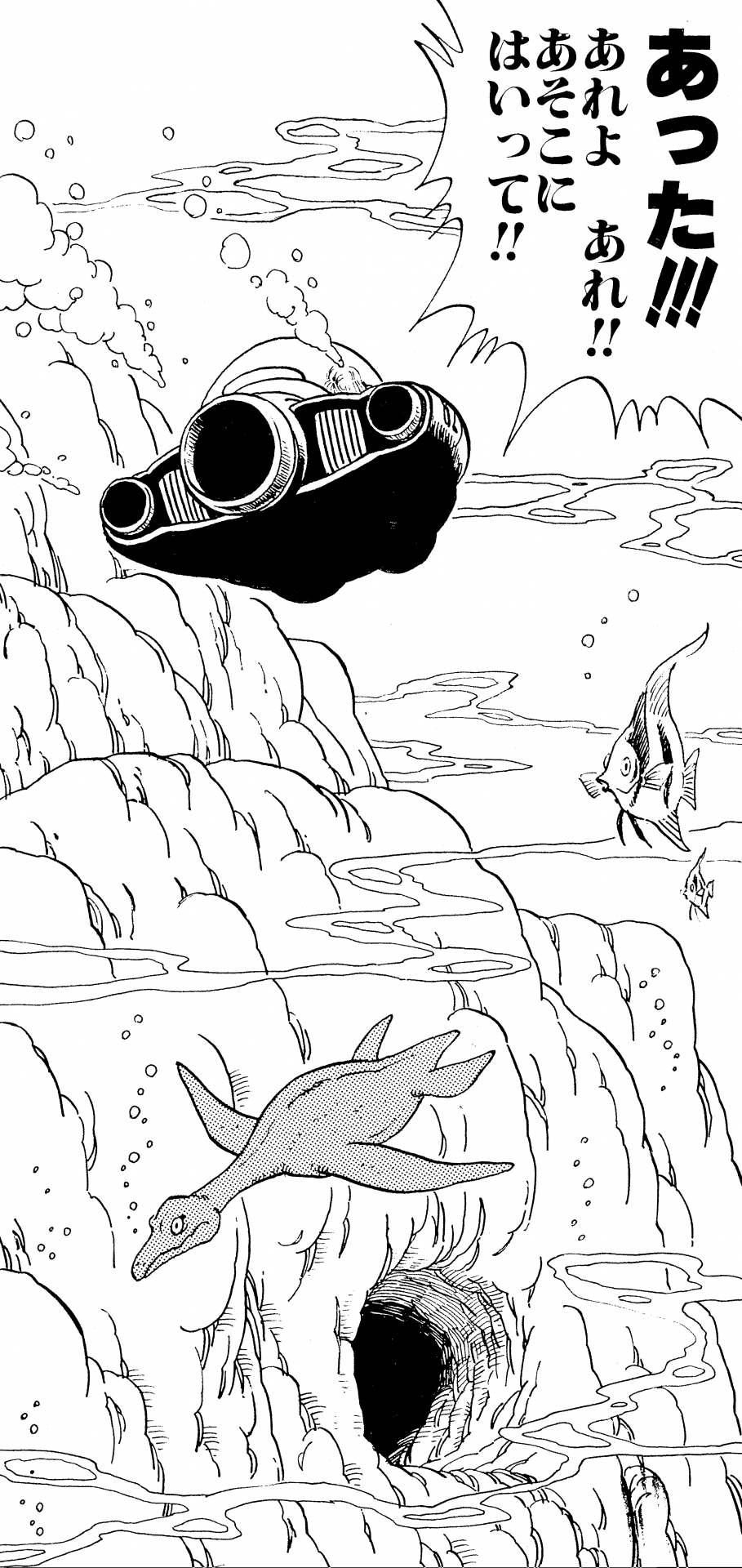 Bulma nutzte ihre Freizeit, um Goku zu helfen, die Dragon Balls zu finden. Sie benutzte ihr Dragon Radar , um einen hier tief im Ozean zu finden.