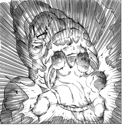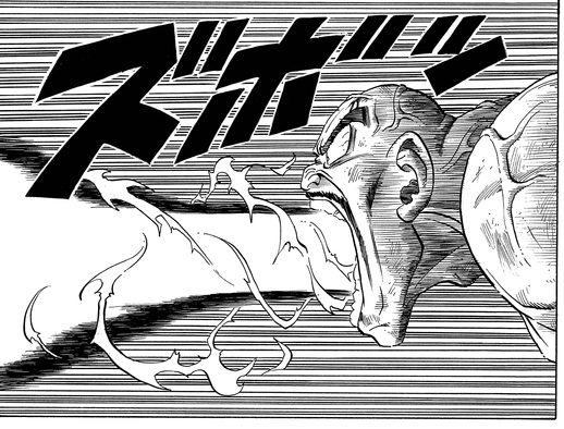 Schließlich gelang es Krillin , einen Treffer zu landen, als er Nappa mit einem Kienzan in die Wange schnitt, und sogar Gohan konnte einen soliden Tritt ausführen, um ihn ins Wanken zu bringen, aber ihre Versuche schienen den Saiyajin nur wütend zu machen. In seiner Wut versuchte er, Gohan mit einem monströsen Energiestoß auszulöschen, aber in einer unerwarteten Wendung tauchte Piccolo vor dem Angriff auf und opferte sich, um ihn zu retten.