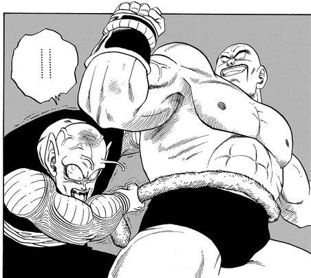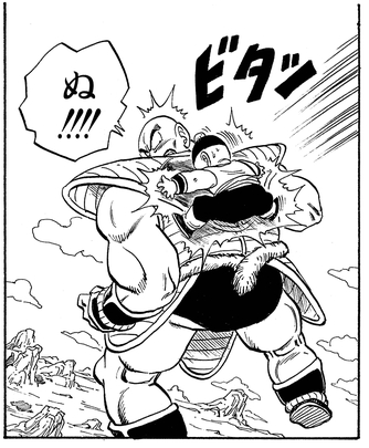 Piccolo nutzte sein Wissen über Saiyajin-Schwächen, das er aus früheren Schlachten gegen Goku gewonnen hatte, und packte Nappas Schwanz, aber selbst dies erwies sich als sinnlos, da Nappa seinen Schwanz für solch eine Gelegenheit trainiert und gestärkt hatte! So sehr Piccolo und Krillin ihrerseits auch zu widerstehen versuchten, sie waren der überwältigenden Kraft des elitären Saiyajin-Kriegers nicht gewachsen.