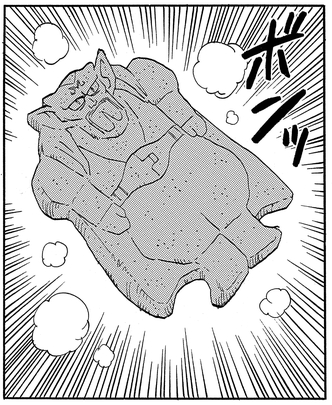 Allerdings hat dies wenige Effekte gegen Majin Buus nahezu unzerstörbaren Körper, und Buu rächt sich, indem der Dämonenkönig mit Cookies manipuliert und ihn als Ganzes aufgefressen wird.
