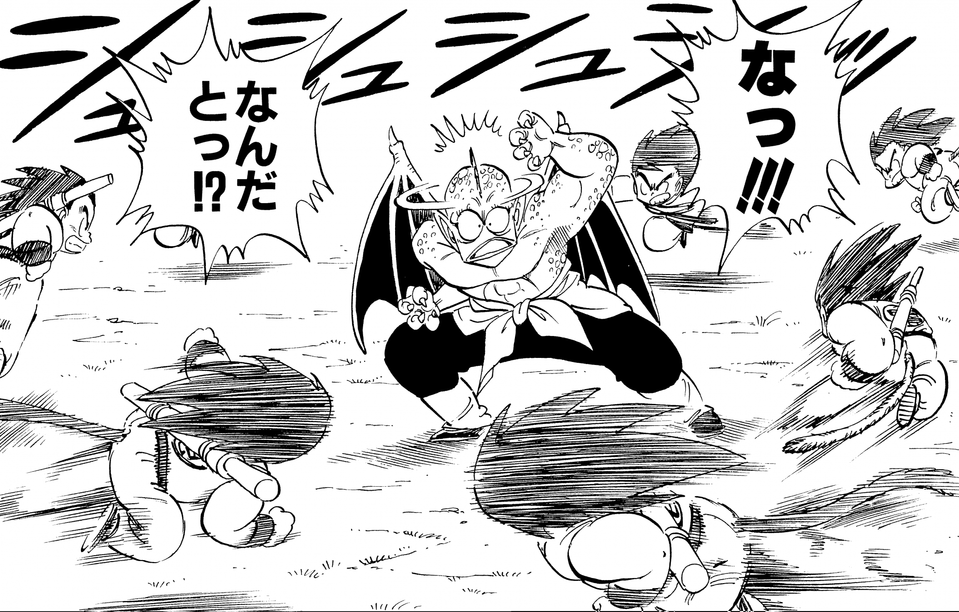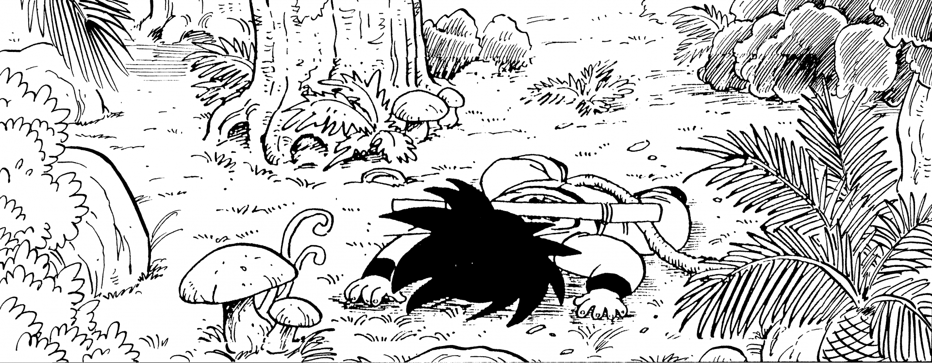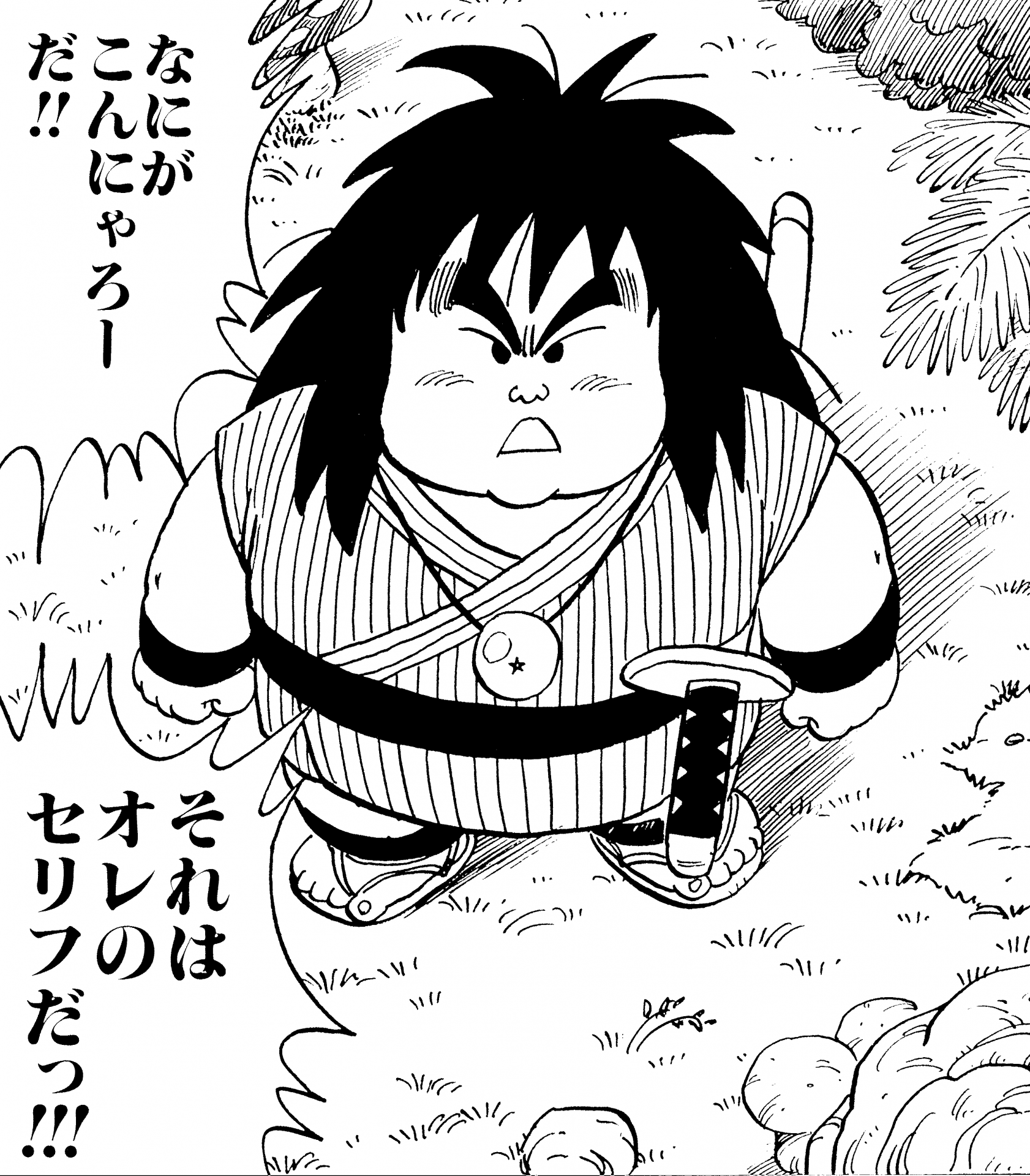Goku verschlang nicht nur Yajirobes frisch gefangenen und gegrillten Fisch, sondern hielt ihn auch wegen des Dragon Ball , den er um seinen Hals trug, für einen von Tambourines Verbündeten.