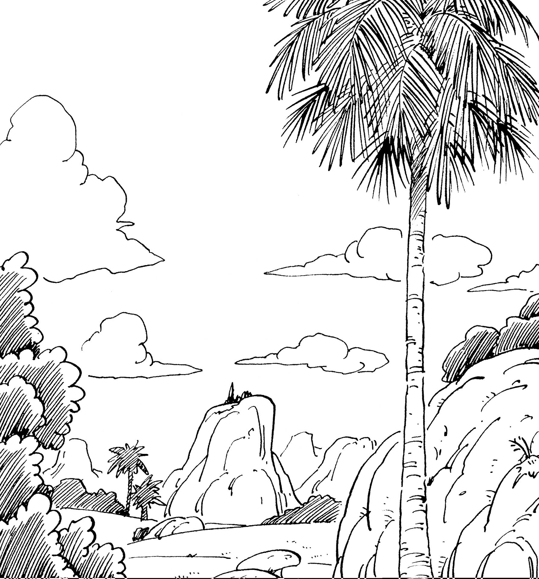 Dies ist der Ort, an dem Goku fiel, nachdem er von Tambourine, einem von König Piccolos Untergebenen, vom Himmel geschlagen wurde. Goku wurde zunächst von Tambourine besiegt, da er all seine Kraft im Kampf im Tenkaichi Budokai hatte, aber er konnte sich erholen, nachdem er Yajirobes gigantischen gegrillten Fisch gegessen hatte. Dieser Ort ist auch der Ort, an dem Goku zum ersten Mal gegen König Piccolo. Geografisch gesehen ist die Gegend ziemlich einzigartig, da Ebenen und Regenwald direkt aneinander grenzen, und es scheint nicht viele Menschen zu geben, die hier leben.