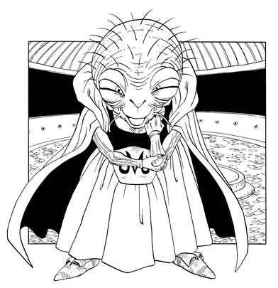 Babidi ist überglücklich, als er zusieht, wie Majin Buu mit Gohan, dem Supreme Kai und sogar Vegeta leichte Arbeit macht, aber seine Freude wird unterbrochen, als Piccolos Wut ausbricht und er Babidi in zwei Teile schneidet.