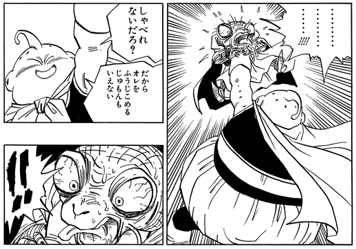 Als Babidi Majin Buu bedrohte, indem er sagte, dass er ihn wieder versiegeln würde, sollte er seinen Befehlen nicht gehorchen, drosselt Majin Buu Babidi so weit, dass er seine Zauber nicht mehr wirken kann. Am Ende ging Babidi kampflos zu Boden.