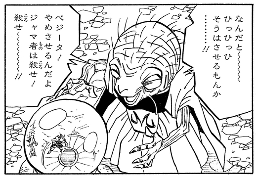 Babidi das Böse, das in Vegetas Herzen schlummert, und nutzt seine bösen magischen Kräfte, um den Saiyajin-Prinz zu zwingen, gegen Goku zu kämpfen.