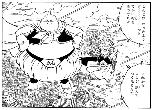 Majin Buu nutzt seine Macht, um Babidi wiederzubeleben, und die beiden ziehen weiter, um eine Stadt nach der anderen zu vernichten, in der Hoffnung, Piccolo und die anderen zu erschnüffeln. Doch von Bibidis unerbittlichen Befehlen bombardiert, beginnt Majin Buu vor frustrierter Wut zu kochen, die sich steigert, bis er sich gegen seinen Herrn wendet und ihn zerstört.