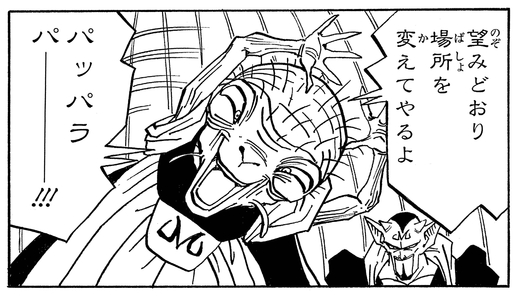 Babidi singt "Papparapa!" und wendet diesen Zauber an, um das Schlachtfeld in die optimale Kampfumgebung für seine Untergebenen zu verwandeln.