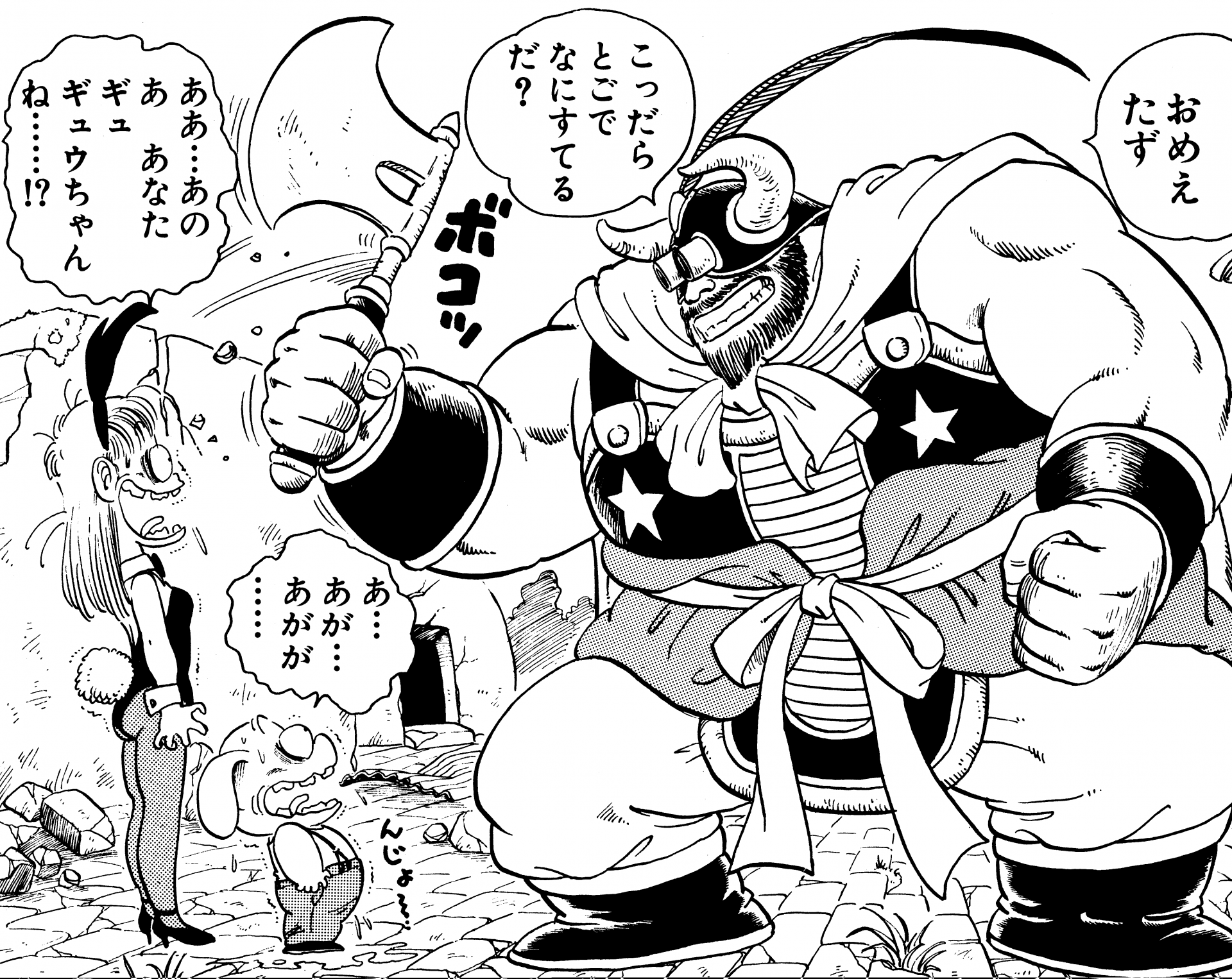 Gyumaos einzige Tochter. Sie begegnete Goku zum ersten Mal während ihrer Suche nach Kamesennin, und danach machten sich beide zusammen auf den Weg zum Kame House . Sie verliebte sich unterwegs in Goku und beschloss, eines Tages seine Frau zu werden.