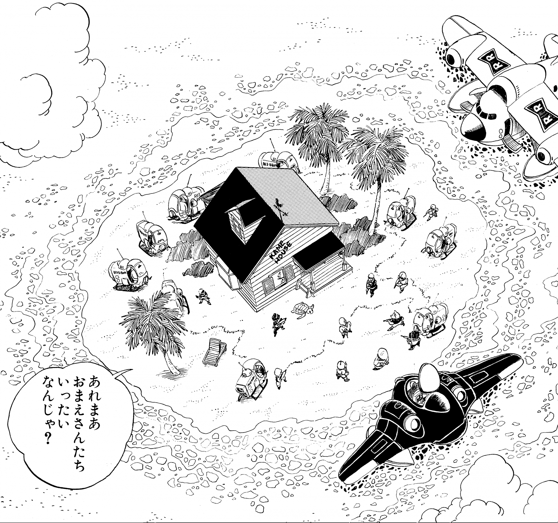 Kame House liegt auf einer kleinen Insel im Archipel südlich des zentralen Kontinents. Bevor Goku auftauchte, um in den Kampfkünsten der Kame School trainiert zu werden, lebte Kamesennin dort nur mit Umigame , der Meeresschildkröte, als Gesellschaft, aber seitdem ist es viel lebhafter geworden, als Krillin und Lunch einzogen und Tenshinhan , um vor ihrem Kampf mit King zu essen Piccolo und diente sogar als Startpunkt für Bulma, Krillin und Gohans Weltraumexpedition zum Planet Namek! Das Haus selbst hat zwei Stockwerke und kann auch in einer Hoipoi Capsule gelagert und bei Bedarf verlegt werden.