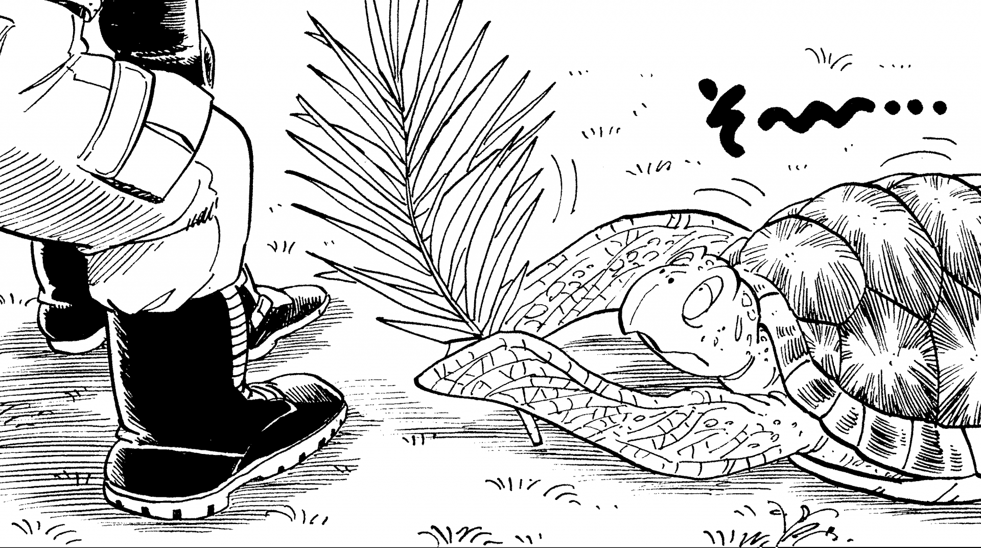 Umigame ist eine empfindungsfähige Meeresschildkröte und langjähriger Freund und Mitbewohner von Kamesennin. Eines Tages verließ er Kame House , um nach Pilzen zu suchen, verirrte sich aber irgendwie und fand über ein Jahr lang nicht zurück. Glücklicherweise traf er auf seiner Wanderung auf Goku und Bulma und konnte mit ihrer Hilfe nach Hause zurückkehren.