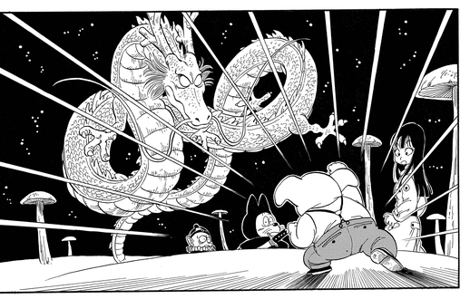 Pilaf benutzt dann seinen kompletten Satz Dragon Balls, um Shenron zu beschwören, damit sein Wunsch nach Weltherrschaft erfüllt wird, aber Oolong schafft es, in letzter Sekunde einzudringen und den Wunsch für sich selbst zu stehlen.