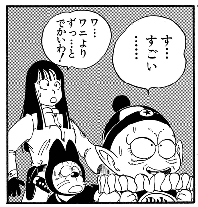 Später gelingt es Goku, sich aus dem Stahlgefängnis zu befreien, in dem er und die anderen festgehalten wurden, indem er den Vollmond betrachtet und sich in einen Menschenaffen Great Ape. In der anschließenden Zerstörung, die das Schloss der Pilaf -Gang fast in Schutt und Asche legt, ist Mai gezwungen, in dem Nachthemd, in dem sie geschlafen hat, überstürzt zu fliehen.