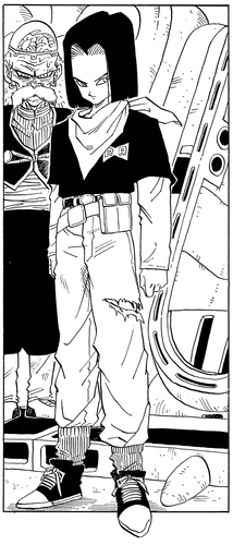 Android 17 ist eine halb Mensch, halb Maschine, die von dem bösen Wissenschaftler Dr. Gero erschaffen wurde.