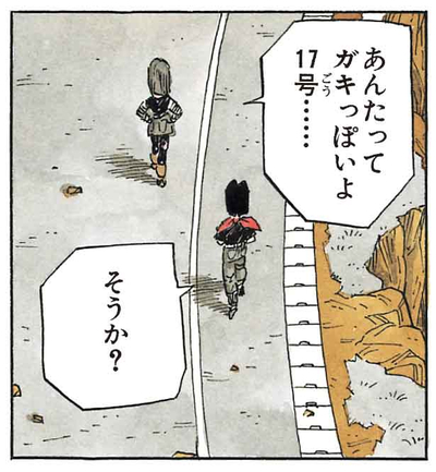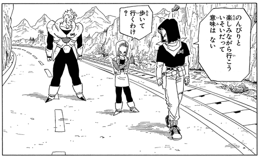 Wenn man darüber nachdenkt, gibt es wirklich keinen Grund für die Androiden, nach Goku zu suchen, indem sie in einem Auto herumfahren – schließlich können sie fliegen! Android 17 zieht es vor, die landschaftlich reizvolle Route zu nehmen und die Fahrt zu genießen. Android 18 hingegen hält die Roadtrip-Idee von 17 für kindisch und Zeitverschwendung.