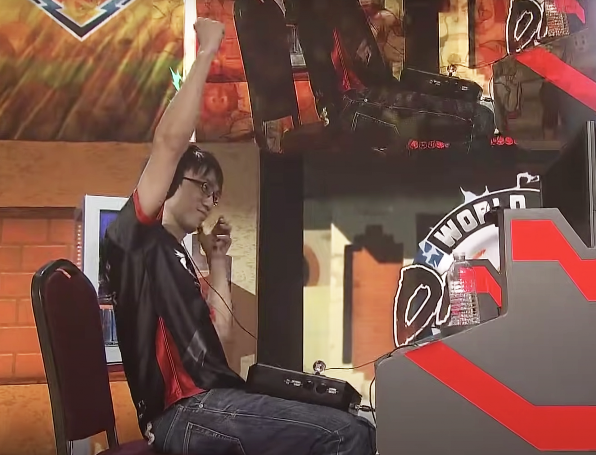 GO1 (links) zerreißt, nachdem er endlich den Sieg errungen hat, und SonicFox (rechts) gratuliert ihm.