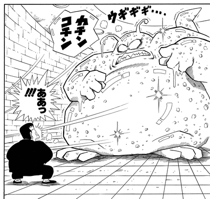 Alle Angriffe von Goku werden von Buyons federndem Körper abgelenkt, und so öffnet er ein Loch in der Wand, um die eisige Außenluft hereinzulassen und sie fest einzufrieren! Danach brauchte Goku nur einen gut platzierten Schlag, um das Monster zu zerschmettern, bevor er in den Mantel von Android 8 sprang, um sich warm zu halten – der Android hatte dank seiner robusten mechanischen Form keine Probleme mit der Kälte!