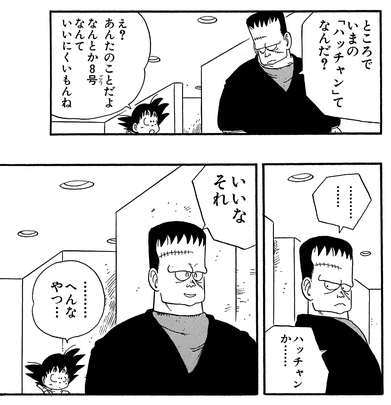 „Android 8“ war ein etwas zu zu viel mechanisches Hokuspokus für den jungen und weltfremden Goku , also beschloss er , es stattdessen auf Hatchan abzukürzen!