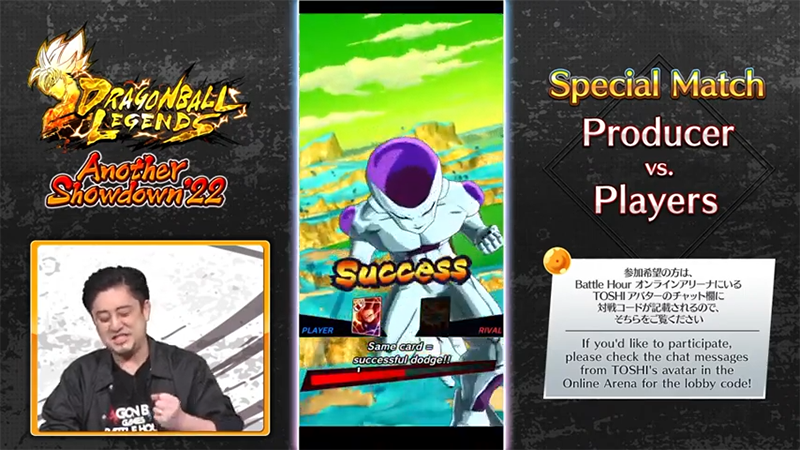 In diesem Jahr hatten die Zuschauer die Möglichkeit, in Dragon Ball Legends gegen niemand Geringeren als den Produzenten des Spiels, TOSHI, anzutreten! Er ging in die Online-Arena und verbreitete seinen PvP-Lobby-Code für alle sichtbar – wer ihn im Spiel am schnellsten eingab, würde ihm gegenüberstehen. Welche Art von Schlachten waren auf Lager? Und könnte TOSHI seine Ehre verteidigen und den Sieg mit nach Hause nehmen?