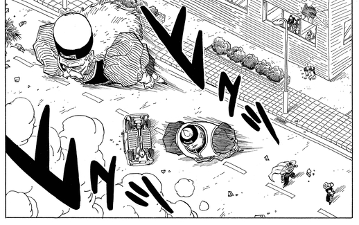 Laserstrahlen schießen aus den Pupillen von Android 20 im Handumdrehen! Die Explosionen selbst sehen vielleicht nicht nach viel aus, aber ihre zerstörerische Kraft reicht aus, um eine Stadt im Handumdrehen dem Erdboden gleichzumachen!