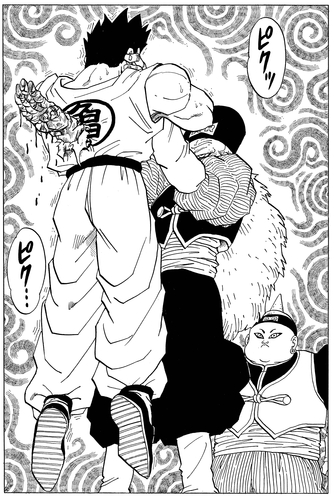 Er zieht sich zurück, nachdem er gesehen hat, wie 19 von Vegeta in Stücke gerissen wurden, und während es ihm gelingt, etwas von Piccolos Energie zu stehlen, dreht der Namekian Krieger schnell den Spieß um.