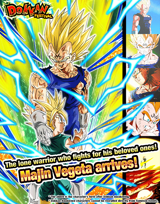 *Der oben abgebildete Charakter ist die erwachte Dokkan-Form von [Ein einsamer Kampf] Majin Vegeta, der über die Dokkan-Festbeschwörung verfügbar ist.